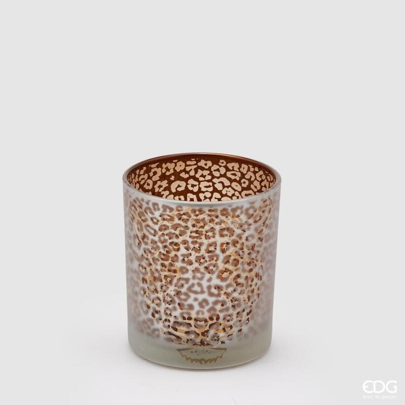BOUGEOIR EN VERRE LÉOPARD H10 D9 / BLANC OR
