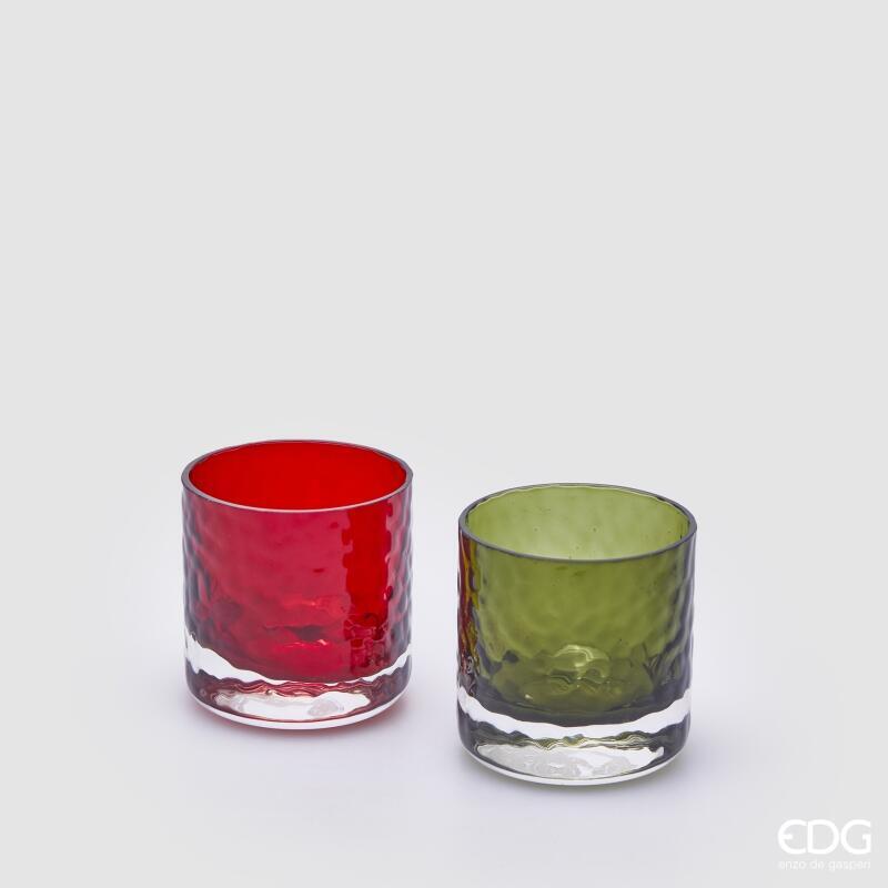 BOUGEOIR EN VERRE H6,5 D6,5 (2ASS) / VERT ROUGE