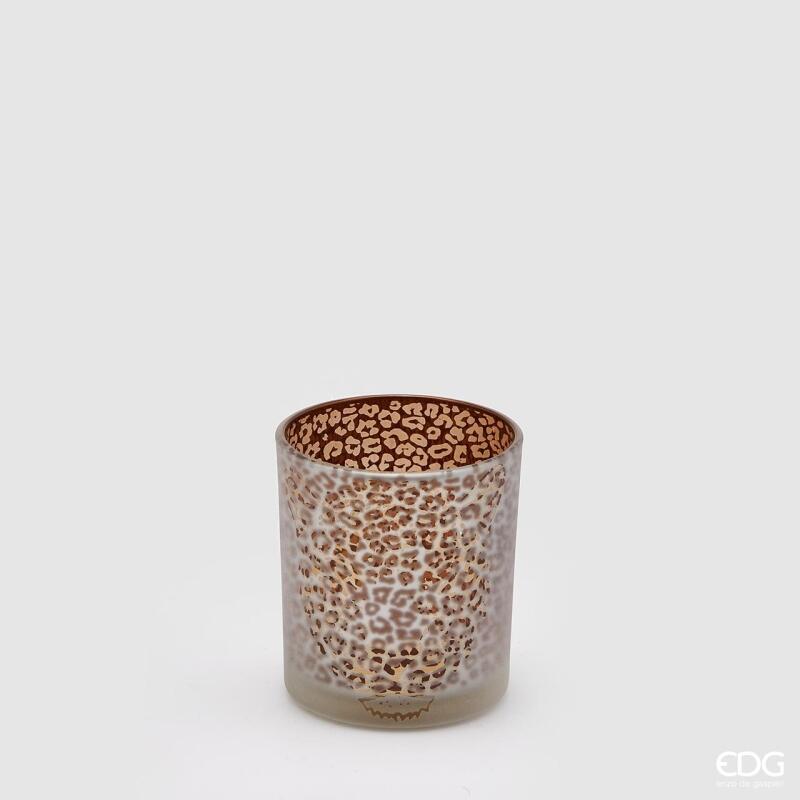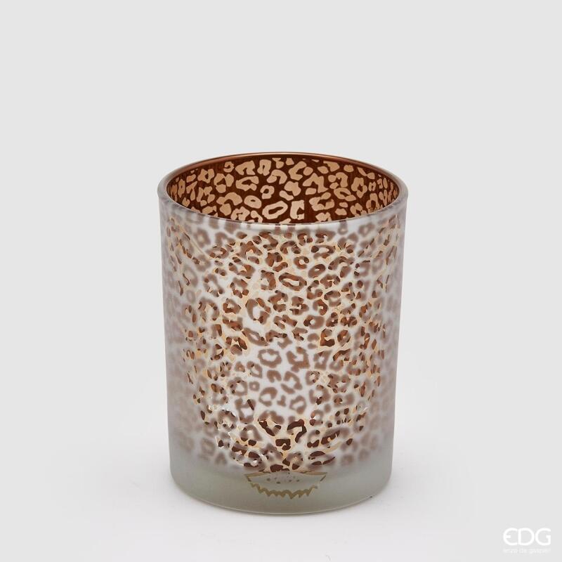 BOUGEOIR EN VERRE LÉOPARD H8 D7 / BLANC OR