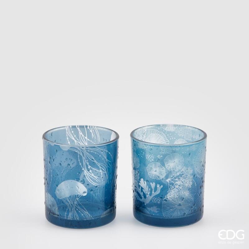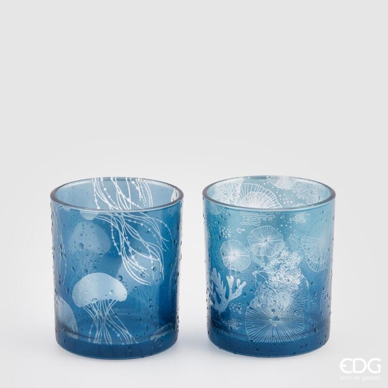 BOUGEOIR EN VERRE MÉDUSE H8 D7 (2ASS) / BLEU