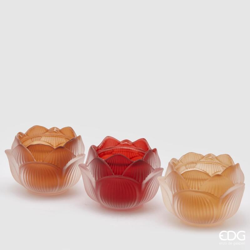 BOUGEOIR EN VERRE LOTUS H7,5 D10,5 (3ASS) / MULTICOLORE
