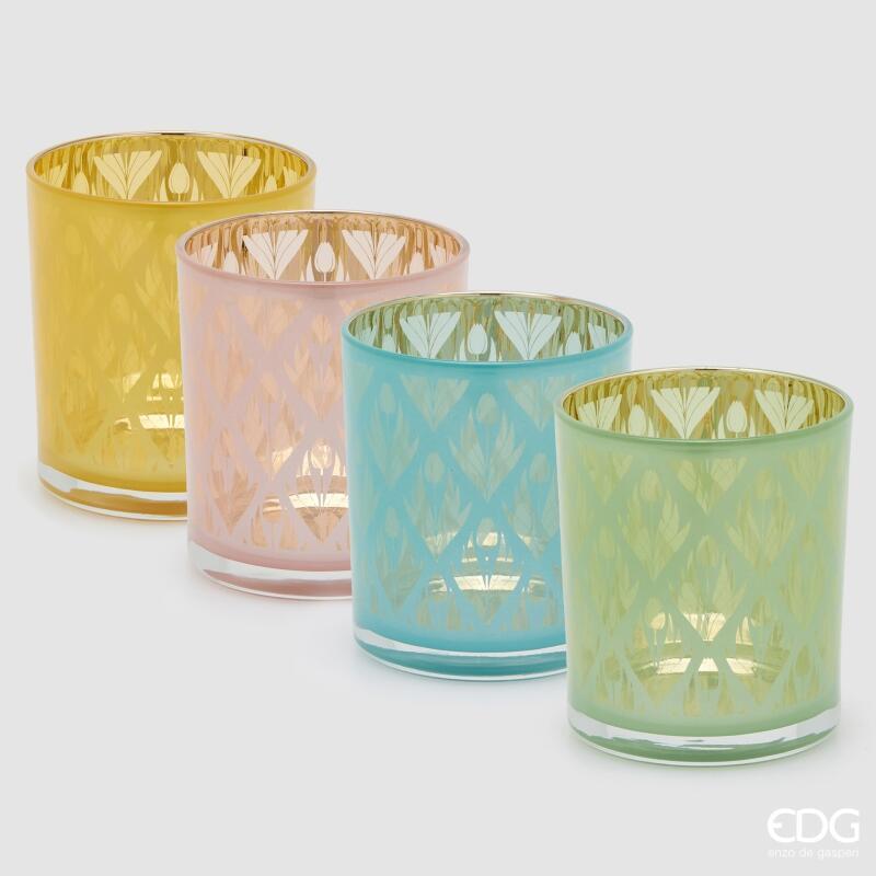 BOUGEOIR EN VERRE LOSANGES ET TULIPES H8 D7 (4ASS) / MULTICOLORE