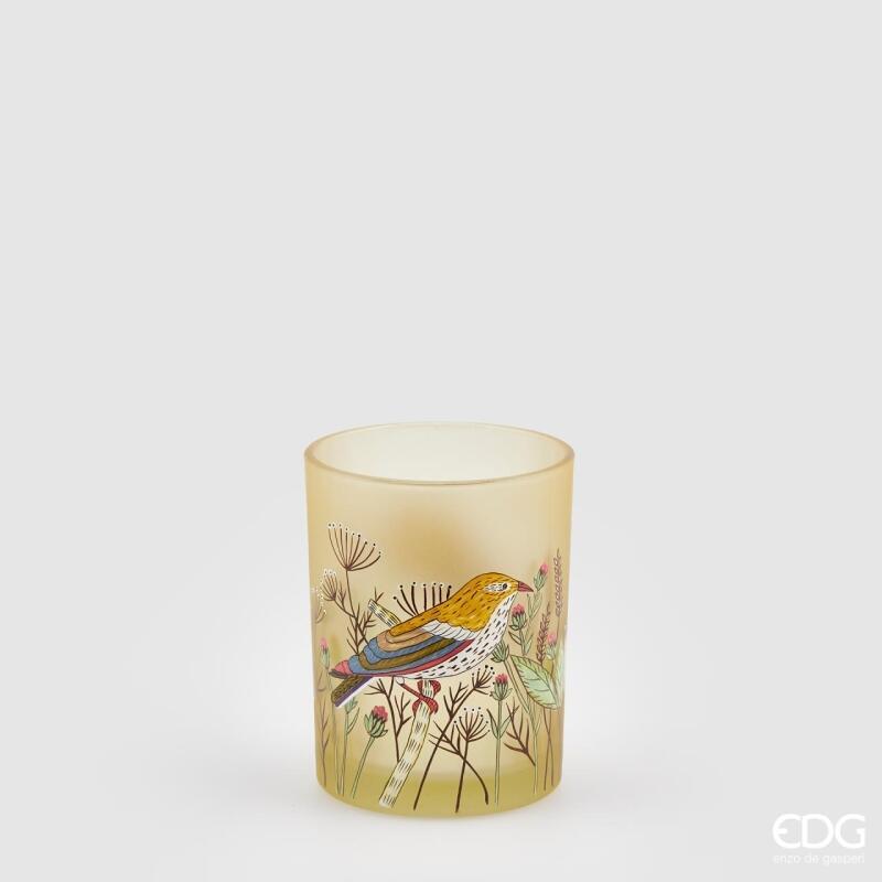BOUGEOIR EN VERRE OISEAU H12,5 D10 / JAUNE