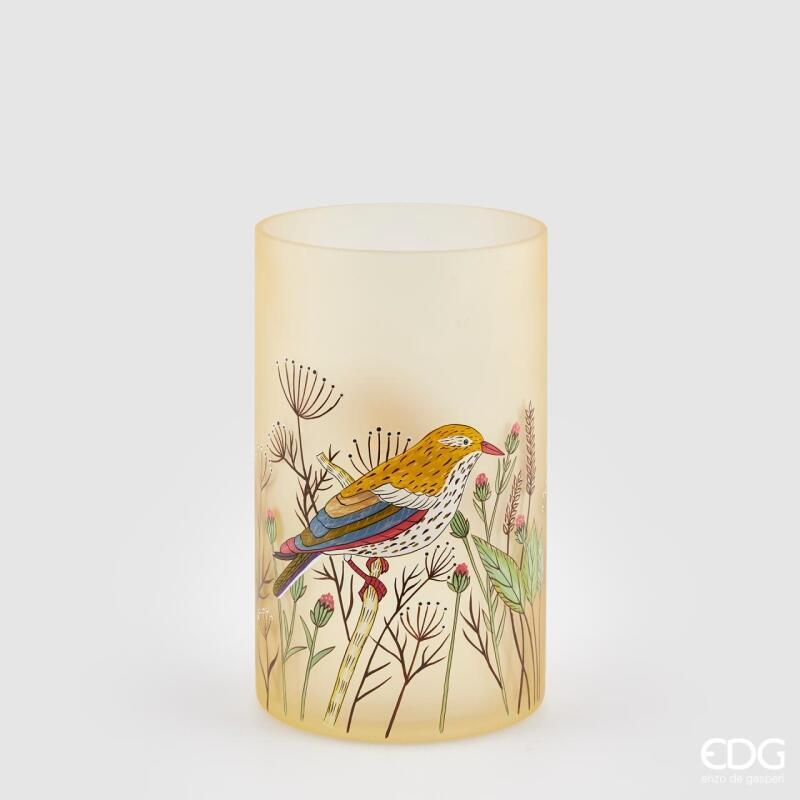 BOUGEOIR EN VERRE OISEAU H20 D12 / JAUNE