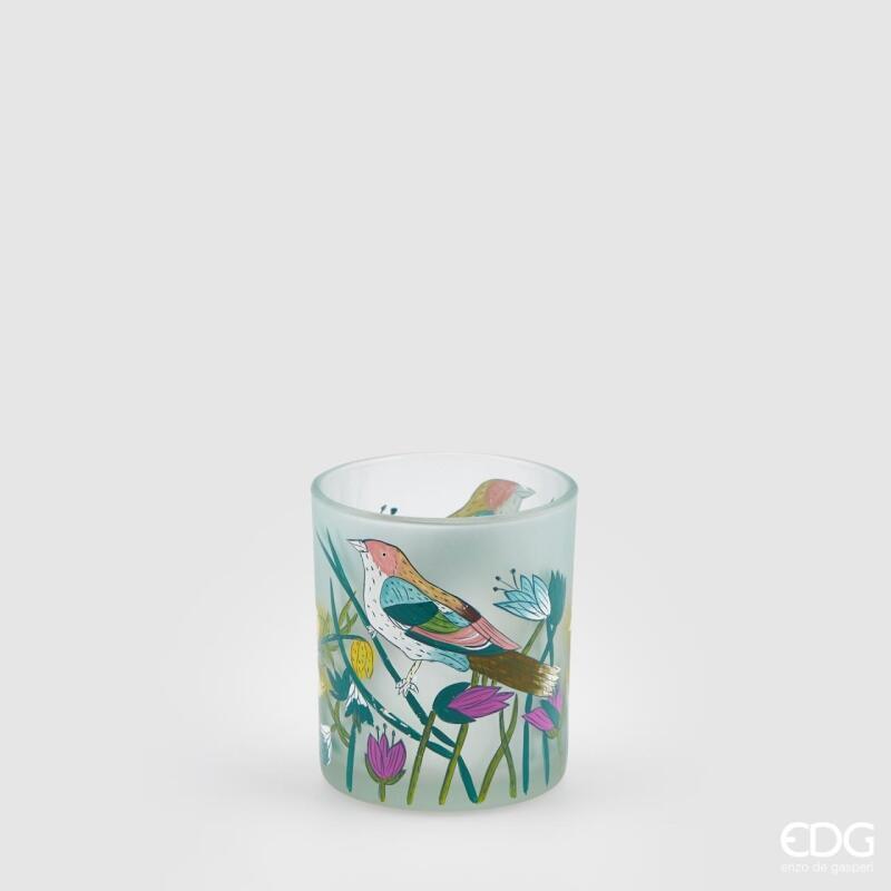 BOUGEOIR EN VERRE OISEAU H10 D9 / MULTICOLORE
