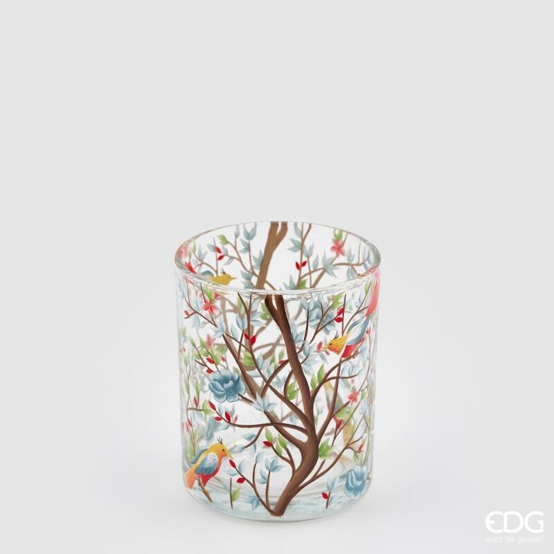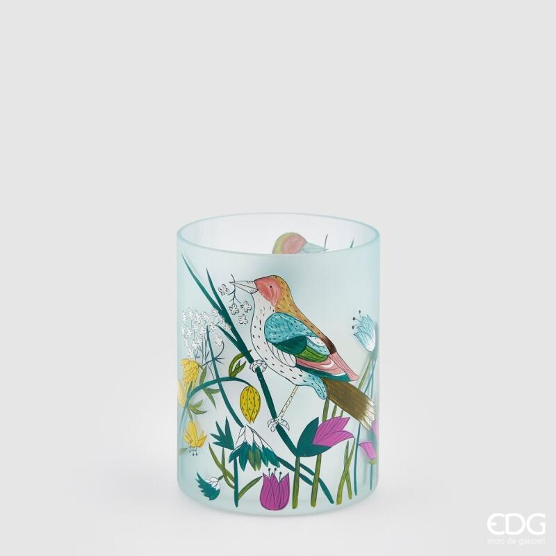 BOUGEOIR EN VERRE OISEAU H12,5 D10 / MULTICOLORE