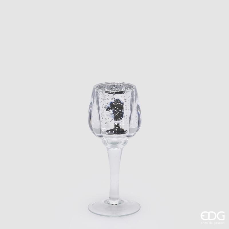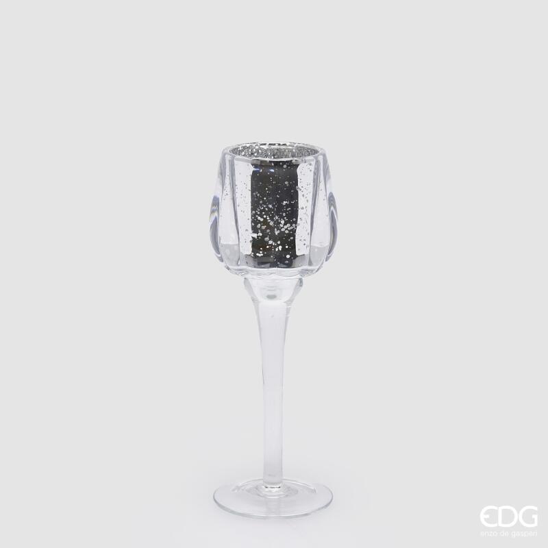 BOUGEOIR EN VERRE CALICE H22 D8 / ARGENT