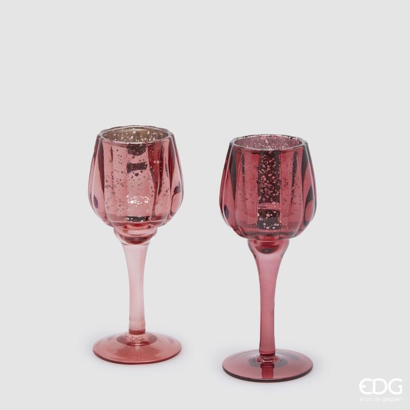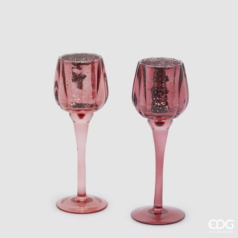 BOUGEOIR EN VERRE CALICE H19,5 D8 ( 2ASS) / ROSE FONCÉ
