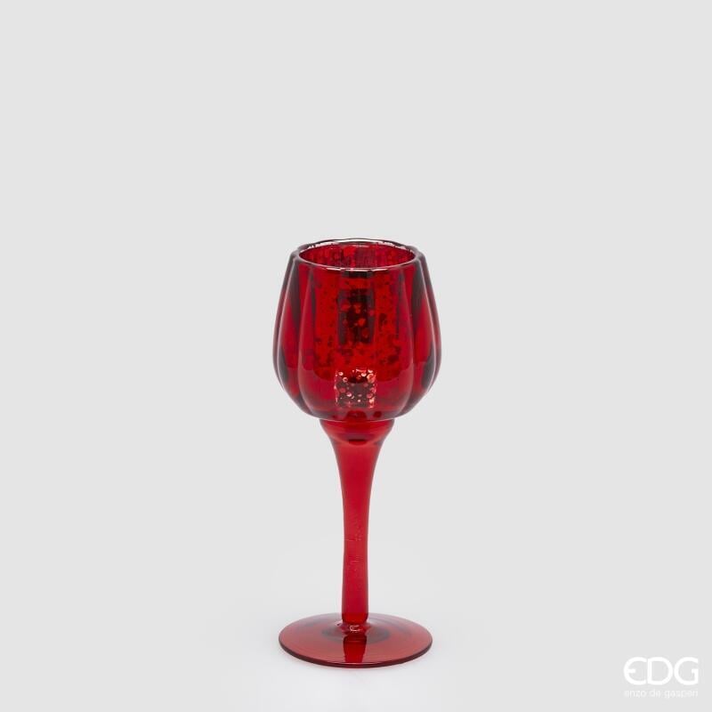 BOUGEOIR EN VERRE CALICE H22 D8 / ROUGE