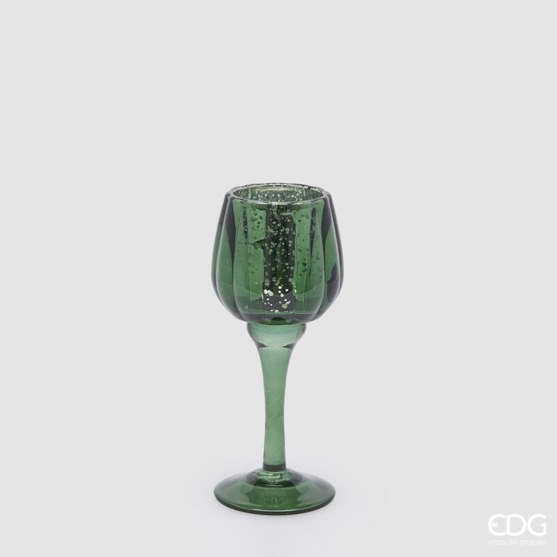 BOUGEOIR EN VERRE CALICE H22 D8 / VERT FONCÉ