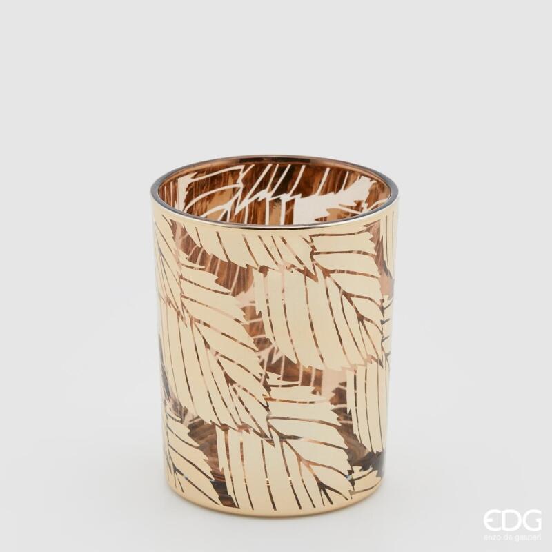 BOUGEOIR EN VERRE DÉCOR FEUILLES H12,5 D10 / OR