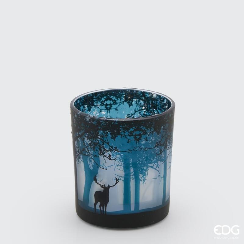 BOUGEOIR EN VERRE DÉCOR FORÊT H10 D9 / BLEU