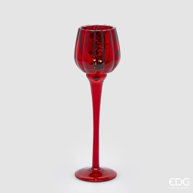 BOUGEOIR EN VERRE CALICE H27,5 D8 / ROUGE