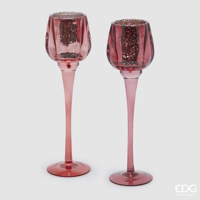 BOUGEOIR EN VERRE CALICE H27,5 D8 ( 2ASS) / ROSE FONCÉ