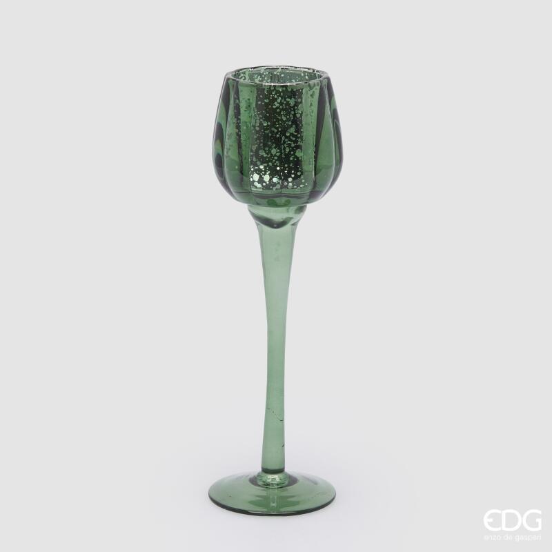 BOUGEOIR EN VERRE CALICE H27,5 D8 / VERT FONCÉ