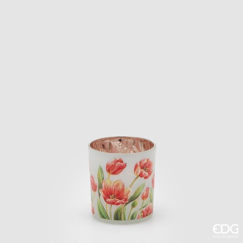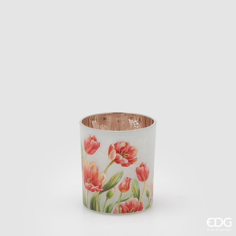 BOUGEOIR EN VERRE DÉCOR TULIPE H10 D9 / VERT ROUGE