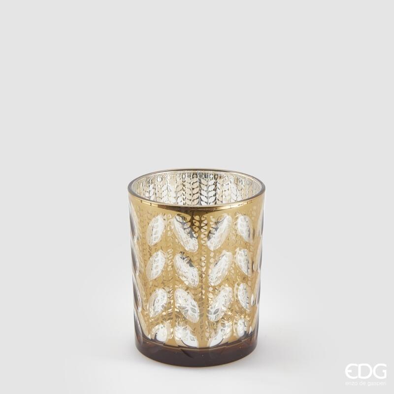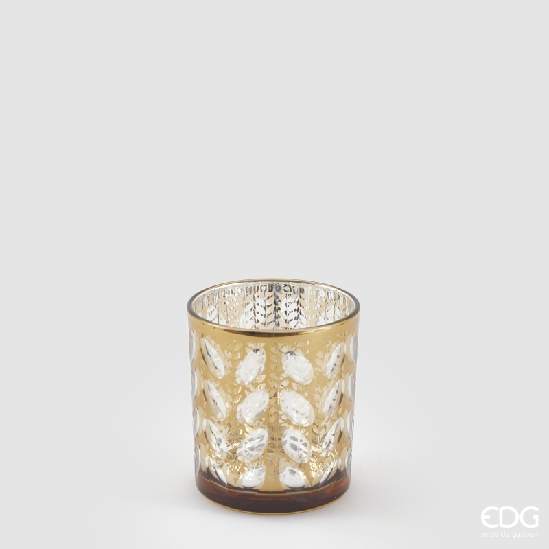 BOUGEOIR EN VERRE FEUILLES EFFET MIROIR H12,5 D10 / AMBRE