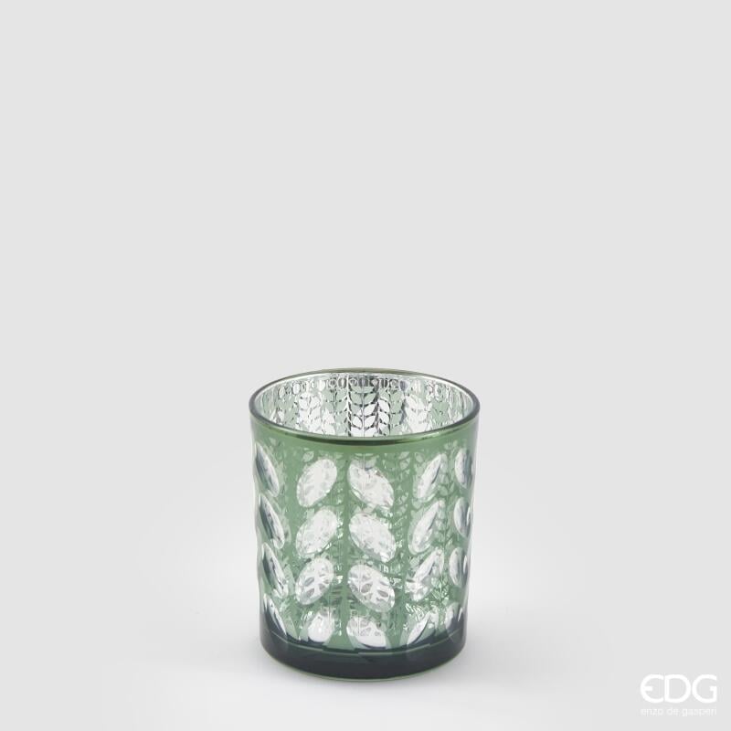BOUGEOIR EN VERRE FEUILLES EFFET MIROIR H10 D9 / VERT FONCÉ