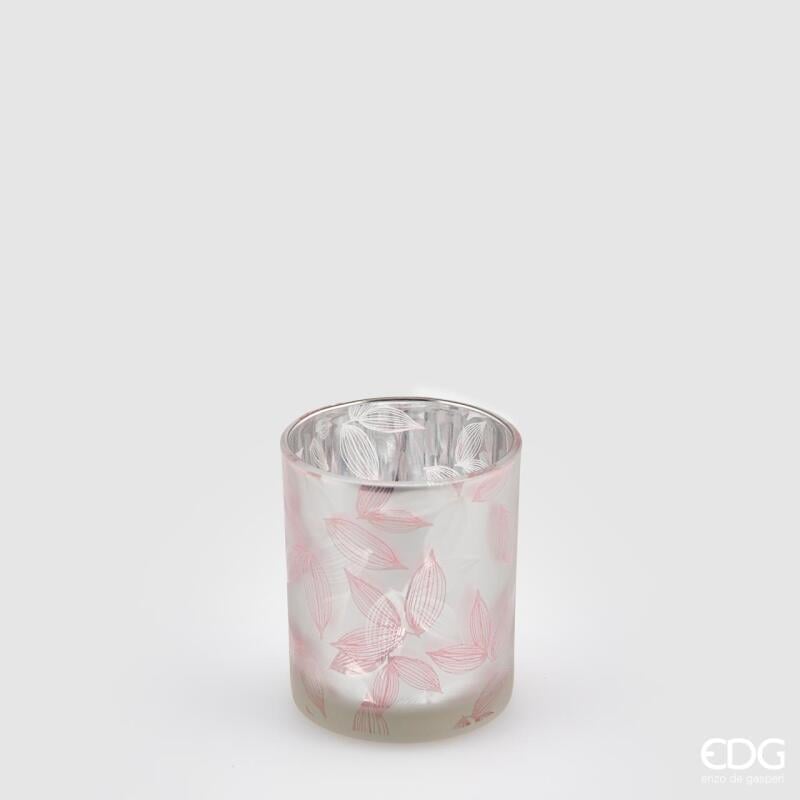 BOUGEOIR EN VERRE FEUILLES H8 D7 / BLANC ROSE