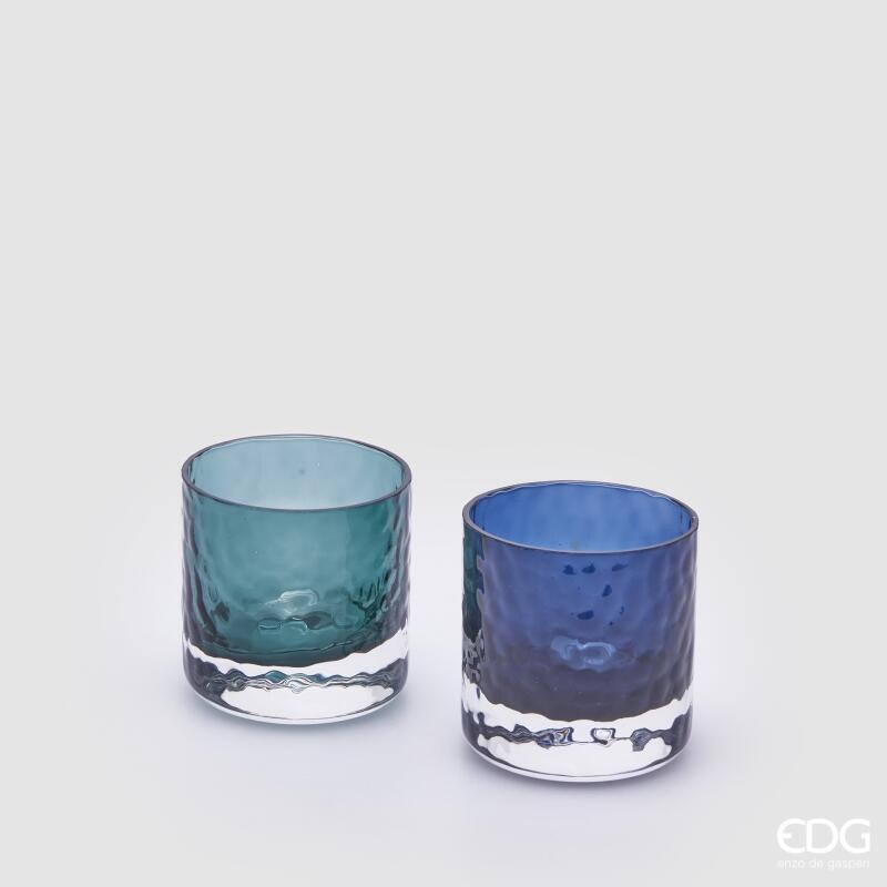 BOUGEOIR EN VERRE H6,5 D6,5 (2ASS) / MÉLANGE DE BLEU