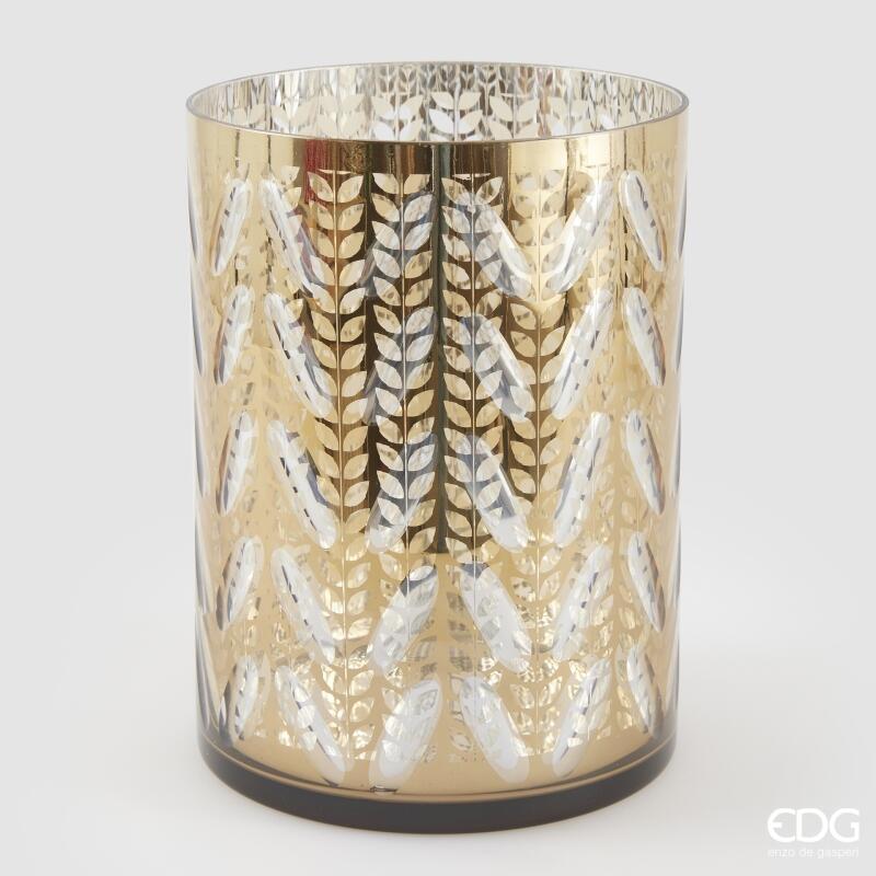 BOUGEOIR EN VERRE FEUILLES EFFET MIROIR H24 D18 / AMBRE