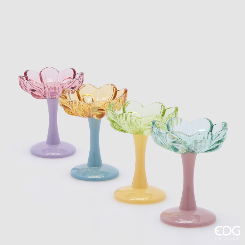 BOUGEOIR EN VERRE FLEUR AVEC PIED H13,5 D11 (4ASS) / MULTICOLORE