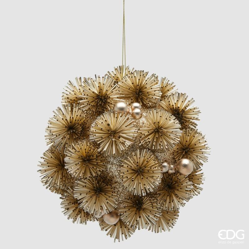 BOULE EN POMPONS ET PERLES D16 / ROSE OR
