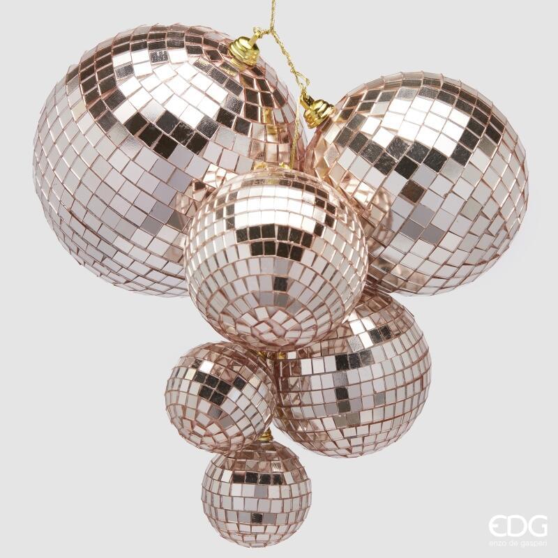 BOULE À FACETTES EN GRAPPE 6PCS H20 / ROSE OR