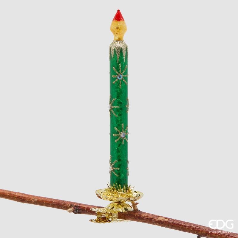 BOUGIE EN VERRE PAILETTÉE AVEC CLIP À FIXER H18 / VERT