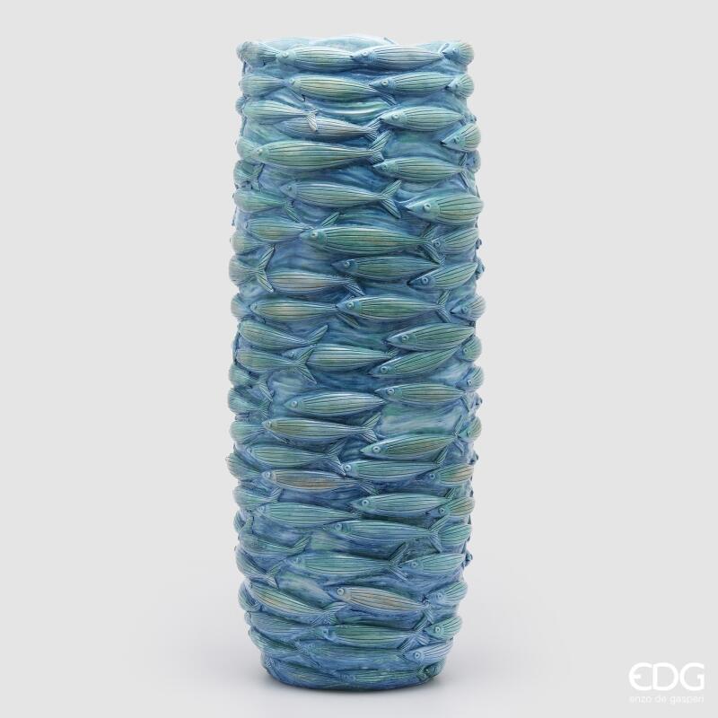 VASE ROND POISSON H72 D28 / BLEU CLAIR