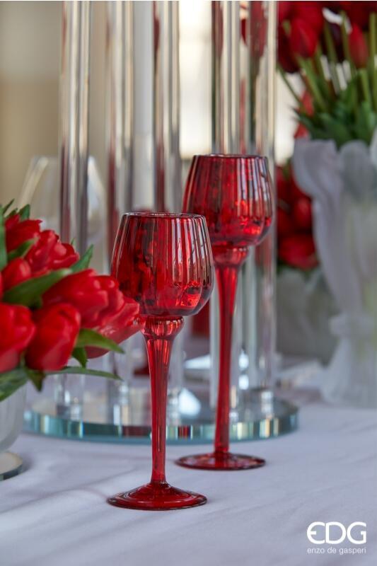 BOUGEOIR EN VERRE CALICE H19,5 D8 / ROUGE