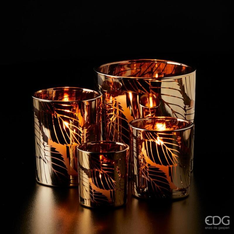 BOUGEOIR EN VERRE DÉCOR FEUILLES H12,5 D10 / OR
