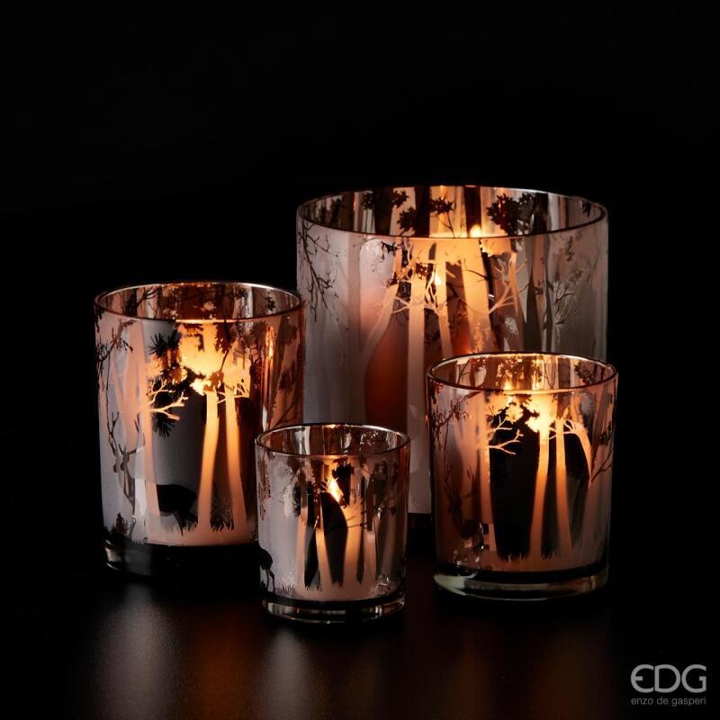 BOUGEOIR EN VERRE DÉCOR FORÊT H8 D7 / MAUVE