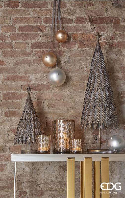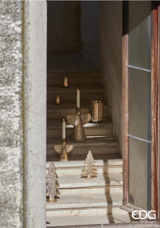 BOUGEOIR EN VERRE FEUILLES EFFET MIROIR H10 D9 / AMBRE