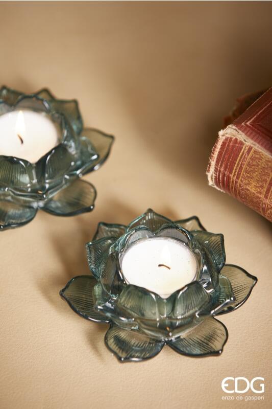 BOUGEOIR EN VERRE LOTUS H4 D10 / BLEU