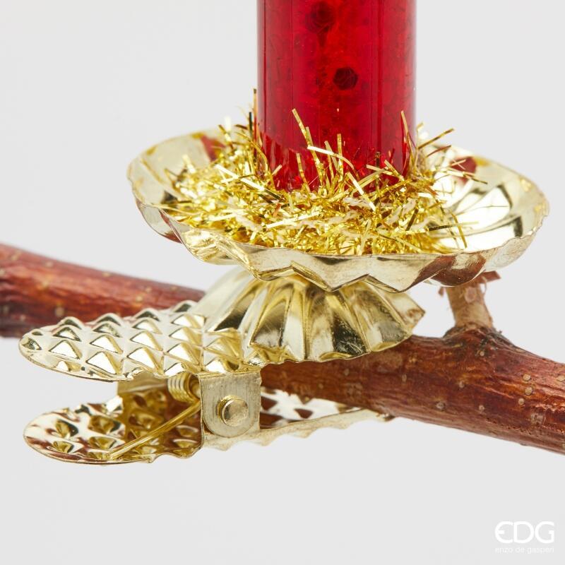 BOUGIE EN VERRE PAILETTÉE AVEC CLIP À FIXER H18 / ROUGE