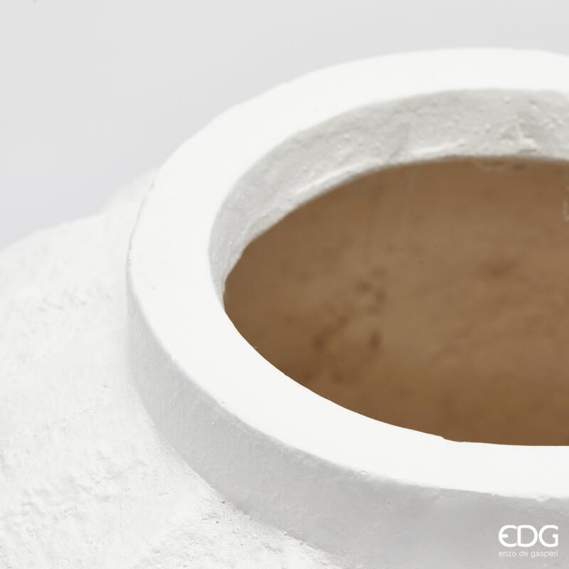VASE EN RÉSINE ROND RAYÉ H30 D28 / BLANC